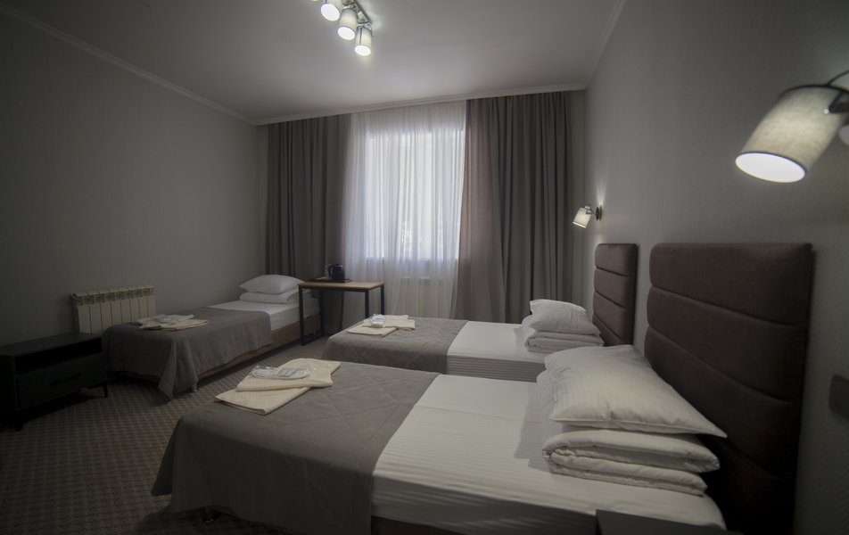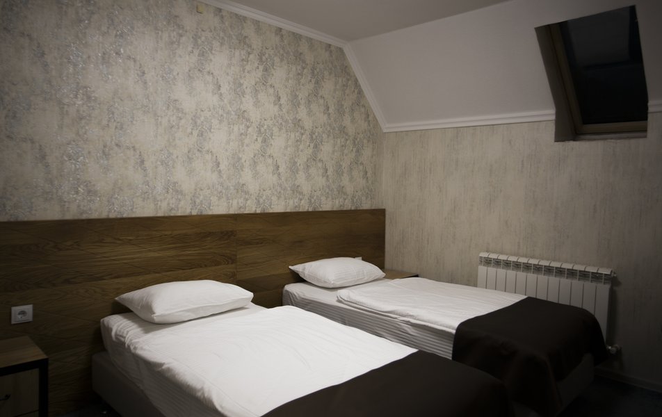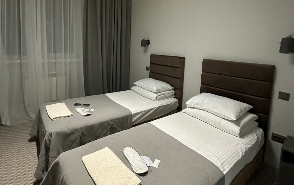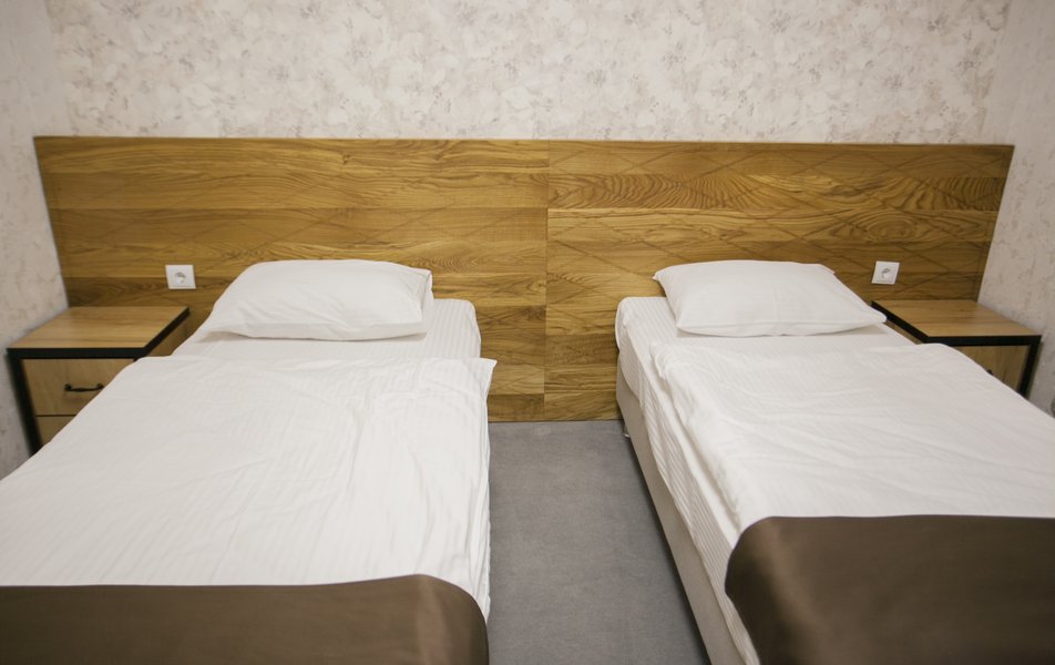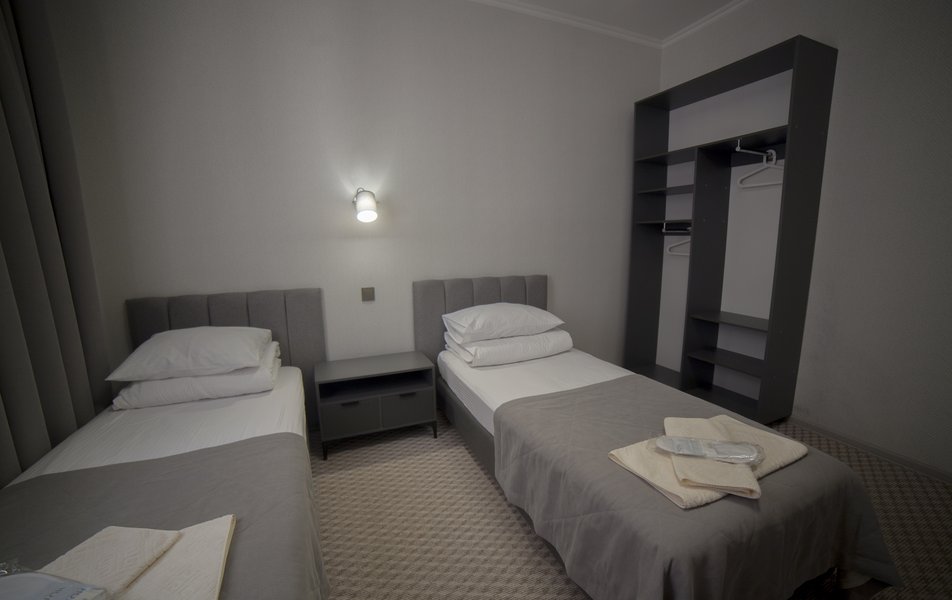 В номере: кровати односпальные, прикроватная тумбочка, стул